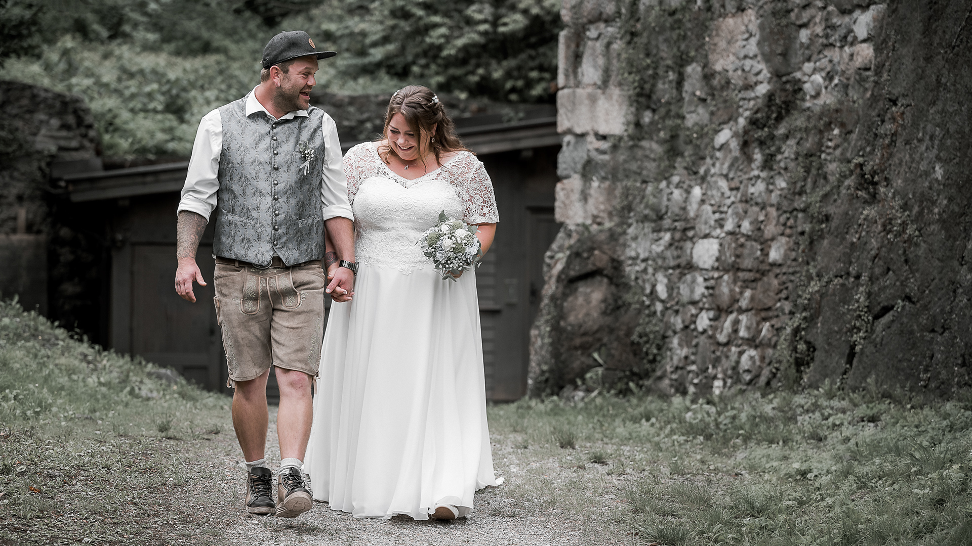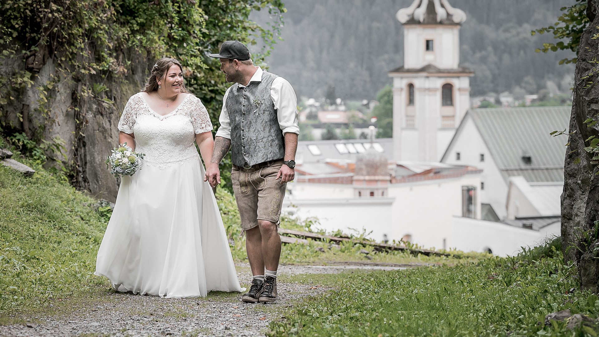 Eine Feier im herrlichen Rahmen der kleinen Stadt Rattenberg in Tirol. Zufällig stand auch noch eine imposante Theaterkulisse am Ort des Shootings.